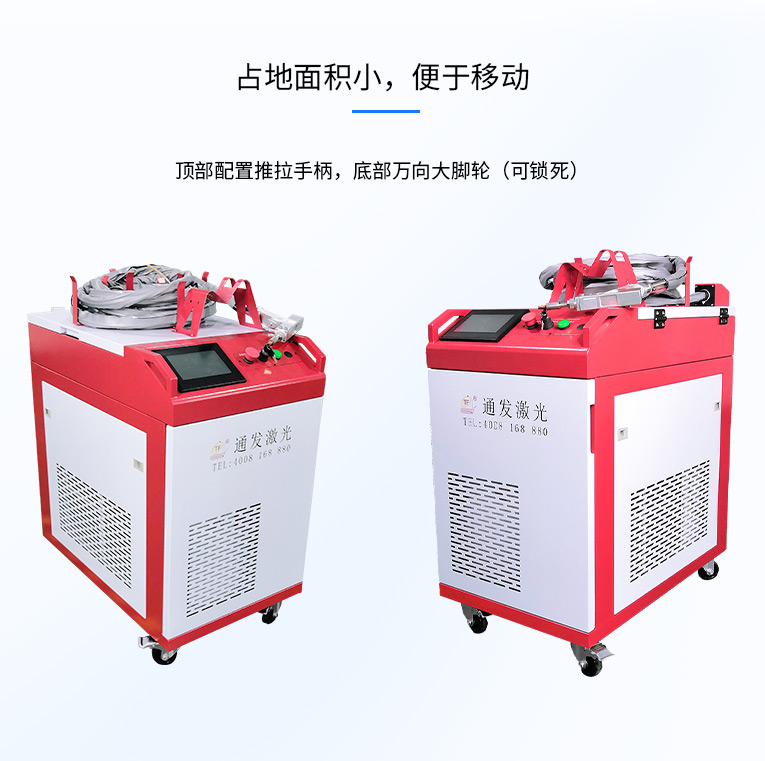 通發(fā)激光一體式手持式激光焊接機(jī),用手持式焊接槍替代以前固定光路,手拿焊接,靈活方便,焊接距離更長(zhǎng),克服工作臺(tái)空間的局限性,工件尺寸不統(tǒng)一時(shí)無(wú)法自動(dòng)焊接的情況下使用。主要針對(duì)大型工件、固定位置如內(nèi)直角、外直角、平面焊縫焊接、焊接時(shí)熱影響區(qū)域小,變形小、而且焊接深度大,焊接牢固。是遠(yuǎn)距離焊接大工件的較為靈活的全新的焊接工藝。